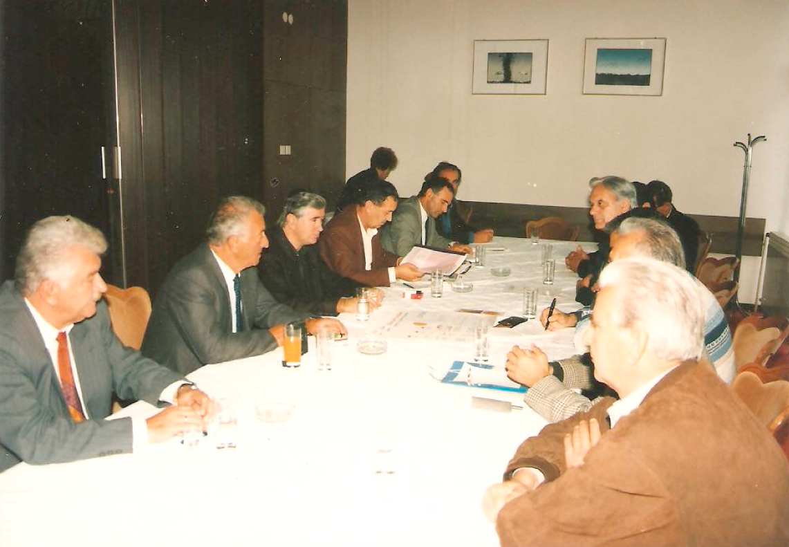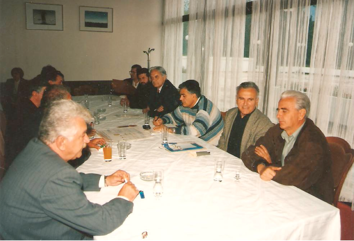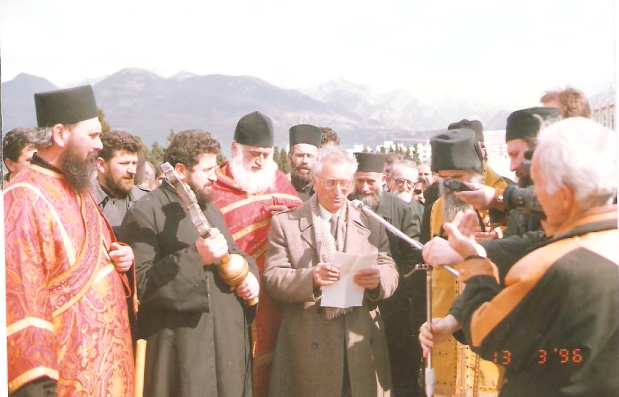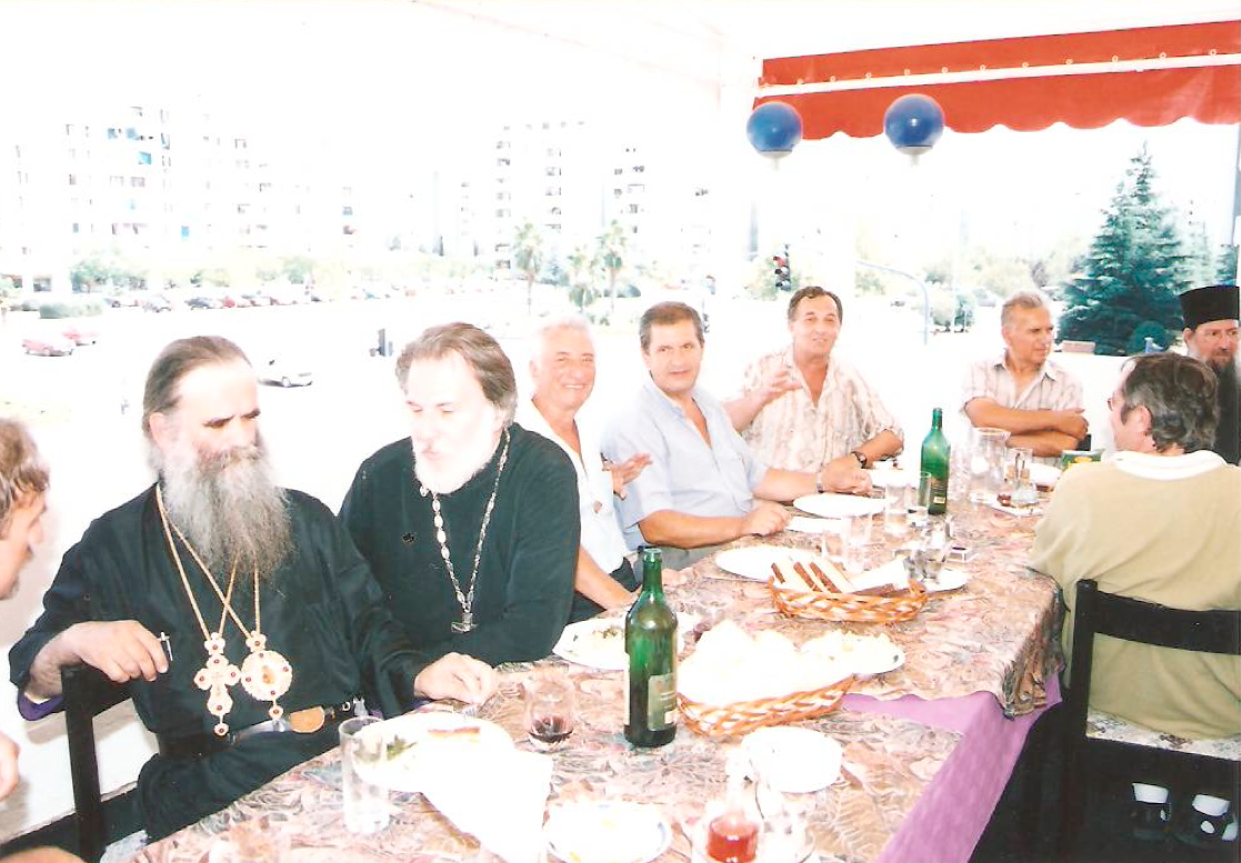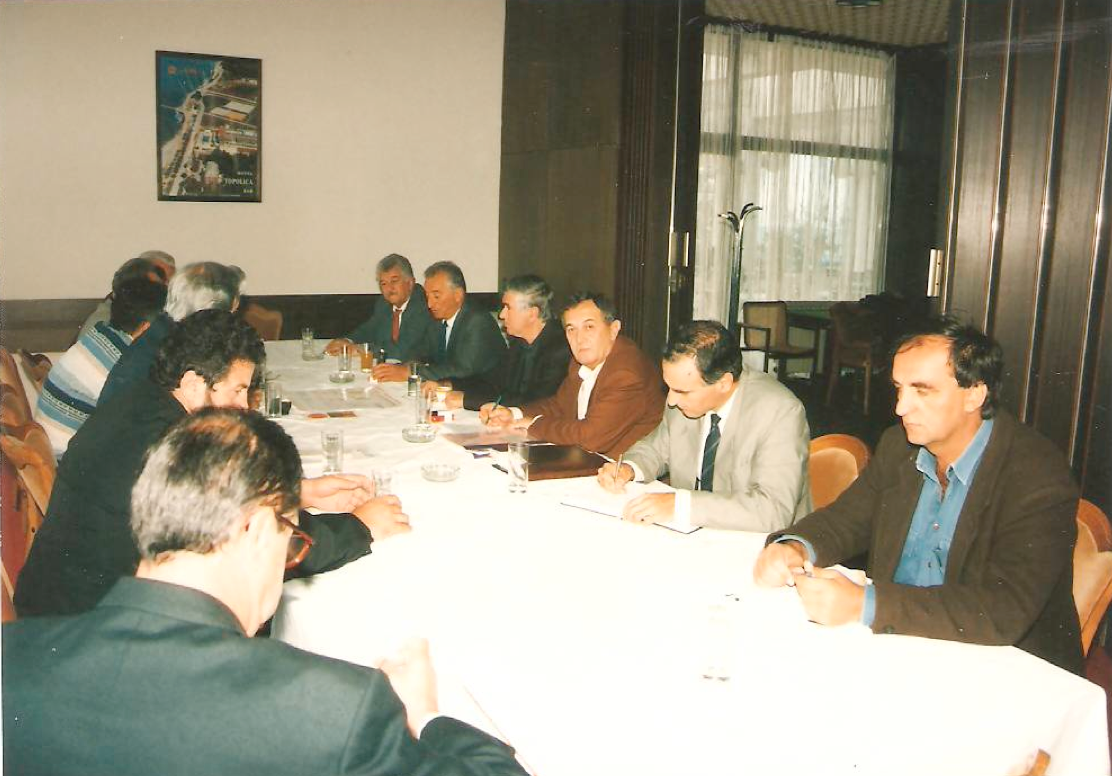 Састанак са министром вјера Слободаном Томовићем и директором Дирекције за Јавне радове Микијем Раичевићем око почетка градње харама.(18.10.1996.)у хотелу Тополица.