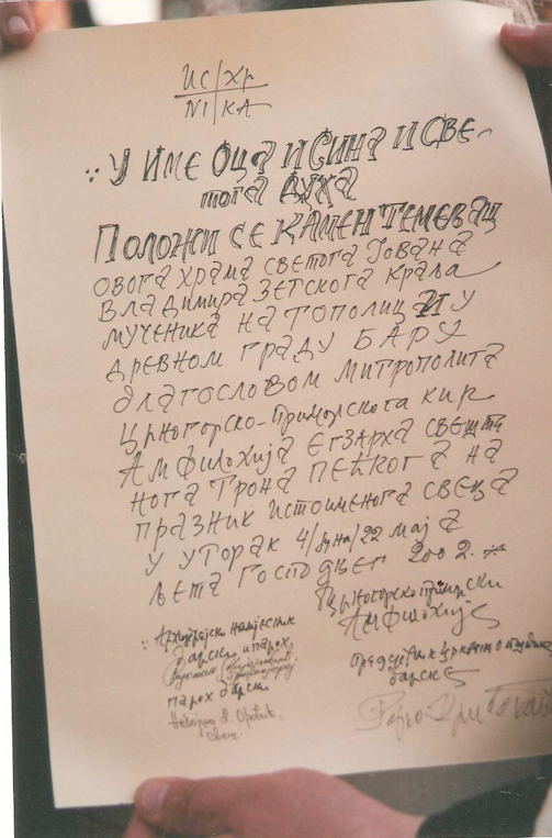 Припреме за градњу Храма Светог Јована Владимира Бар. Од презвитера Богића Фемића и његовог наследника презвитера Радомана Мијајловића са тадашњим одбором.