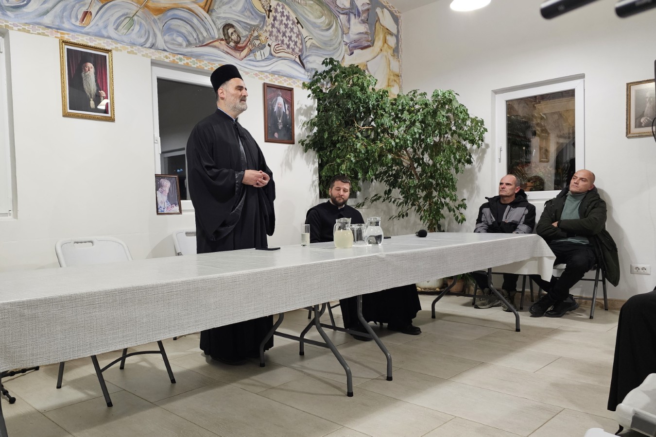 Видимо како сваки ваш бадњак мали, који принесете на овом огњу, постаје велика и жива ватра. Тако је и када се сабирамо храму Божијем на Светој Литургији. Сваки наш мали принос, мали труд, пост, молитва, искрено покајање, када се састанемо на служби Божијој на Светој Литургији, исто тако у нама запламти и распламти заједнички огањ Божанске љубави, непролазне и вјечне.