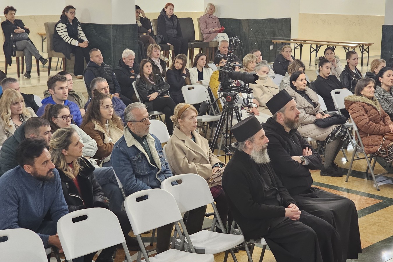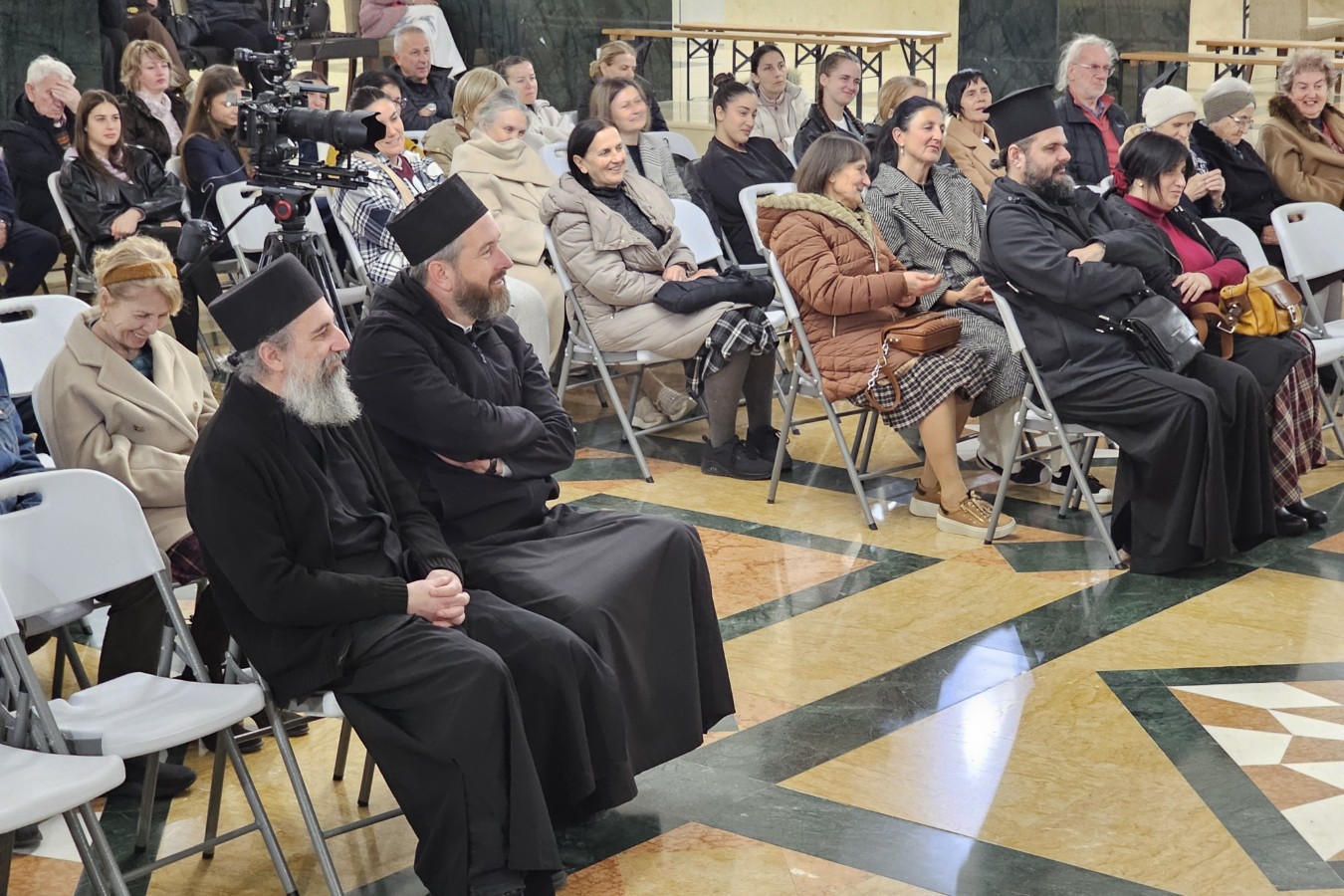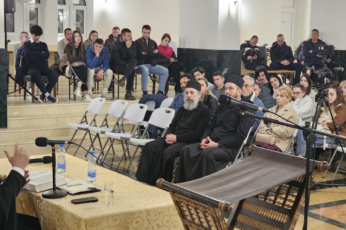 Одмах на почетку о. Владимир је објаснио да се о Царству небеском говори из двије перспективе. Прво, Царство небеско као једна трансцендентна реалност, као оно што је обећано праведницима за један будући, загробни живот у вјечној заједници са живим Богом, Васкрслим Исусом Христом. Значи нешто што не спада у овај живот, већ што нам је обећано и сви тежимо томе да будемо с нашим прецима, са нашим светима у тој објективној реалности трансцендентног будућега вјечнога живота у Богу и са Богом. Али, како и сам назив предавања говори, о Царству небеском се говори и из другог угла, јер Христос говори да је Царство небеско унутра у нама, не поричући да је то будуће царство које ће доћи.